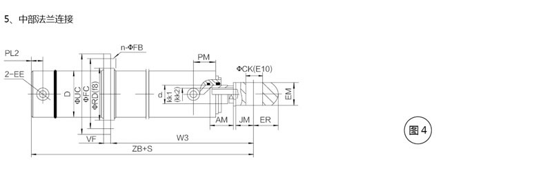 活塞桿端為內(nèi)螺紋桿頭耳環(huán)連接